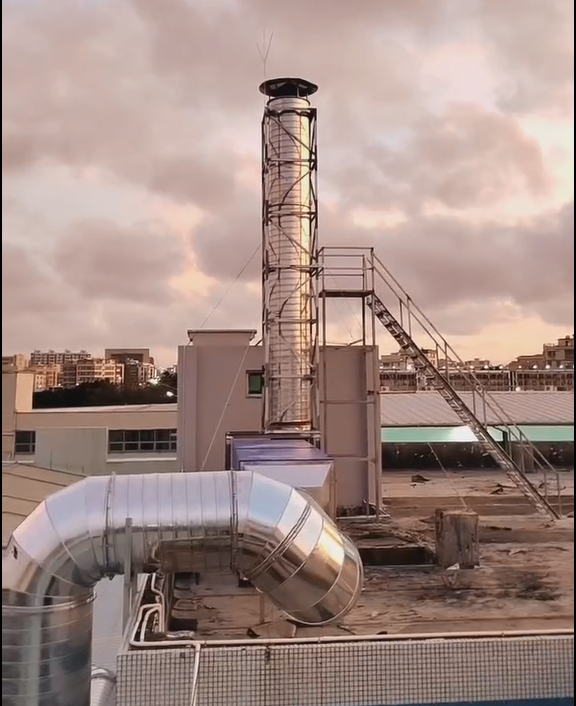 現(xiàn)在1樓設(shè)有2臺擠出生產(chǎn)線預備配套治理設(shè)施,受公司邀請 ,對其廢氣處理系統(tǒng)進行設(shè)計。