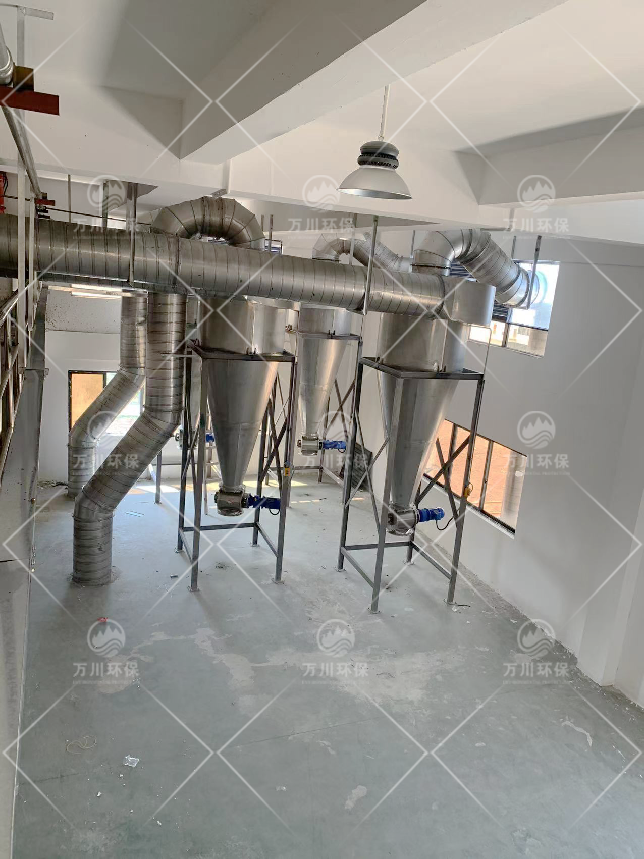 本次根據(jù)設計的方案共采用了4套旋風除塵器+脈沖除塵器組合工藝系統(tǒng)