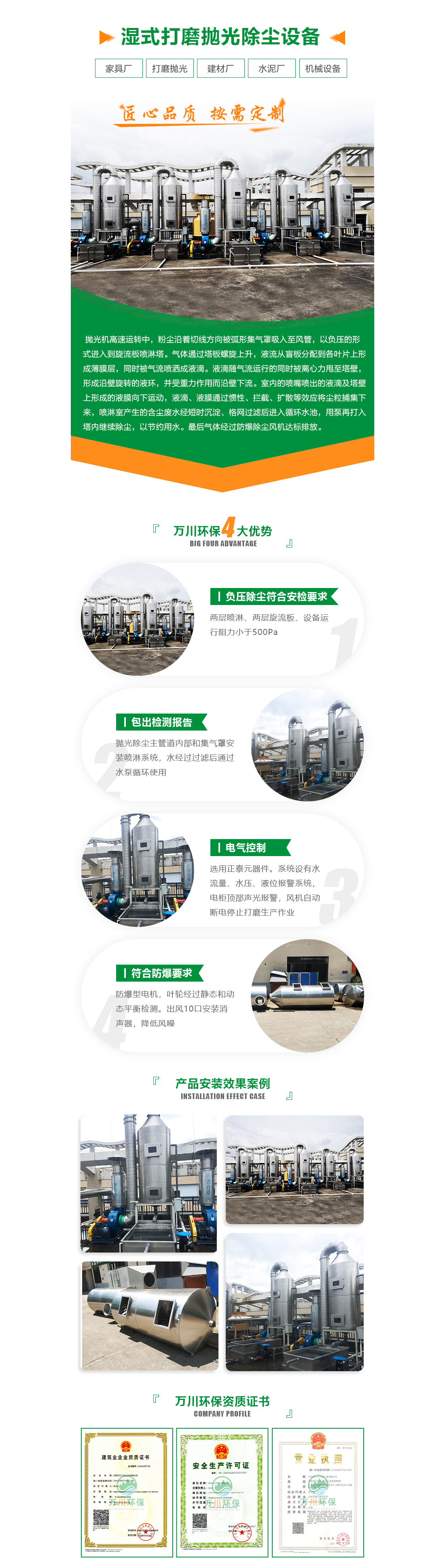 簡(jiǎn)介:惠州市恒信億豐金屬制品有限公司,是一家以生產(chǎn)高質(zhì)量的表帶、表殼、首飾、CNC加工零配件為主的大型港資企業(yè)。該公司設(shè)有多條表帶打磨拋光生產(chǎn)線。生產(chǎn)作業(yè)時(shí),車間內(nèi)飄揚(yáng)起的打磨拋光粉塵會(huì)導(dǎo)致生產(chǎn)效率下降,而且金屬打磨粉塵擁有易燃易爆的特點(diǎn),存在較大的安全隱患 五金廠打磨拋光生產(chǎn)線 五金廠打磨拋光粉塵處理流程簡(jiǎn)圖 拋光機(jī)高速運(yùn)轉(zhuǎn)中,粉塵沿著切線方向被弧形集氣罩吸入至風(fēng)管,以負(fù)壓的形式進(jìn)入到旋流板噴淋...